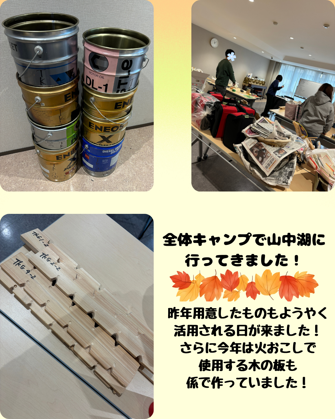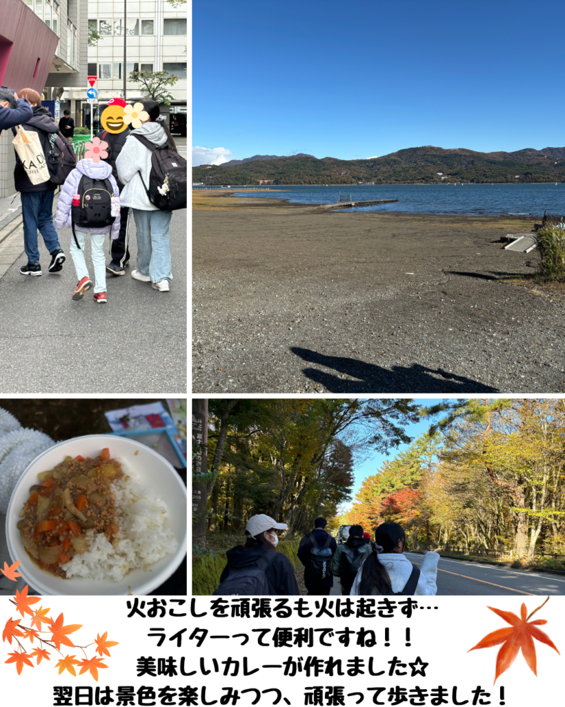 11月2~3日で施設行事のひとつ、全体キャンプに行ってきました!行き先は例年お借りしている、山中湖近くにある林間寮です。昨年度は台風接近のため実施できなかったため、2年ぶりの実施となりました。