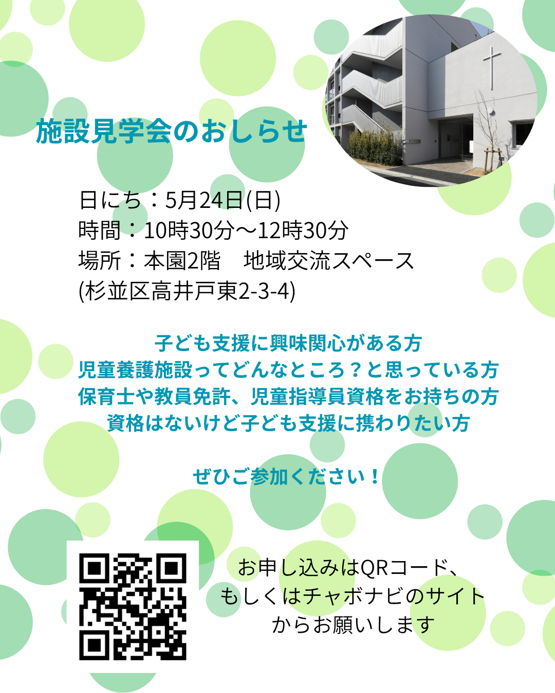 5月の施設見学会のお知らせ